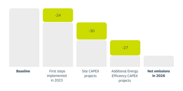Reduction of CO2 resulting from the steam production expressed on % of baseline for CO2 in 2026